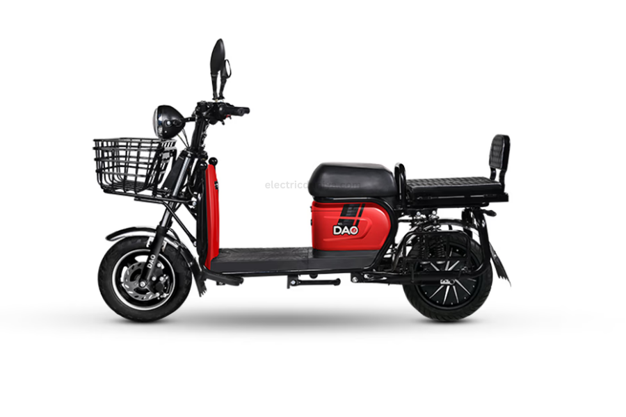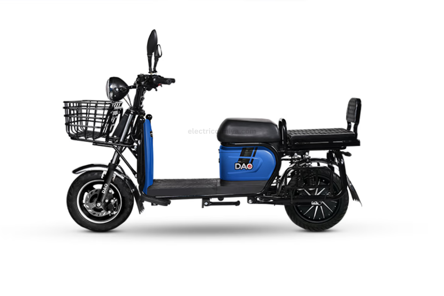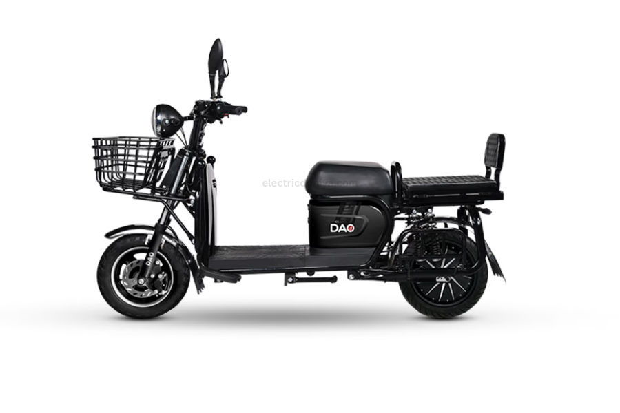 The DAO Zor 405 is a utility-oriented delivery electric scooter with a 1.2 kWh LFP battery, built for heavy payloads and city work, offering ~70 km range at ~25 km/h ideal for small business or delivery riders.