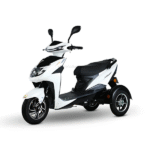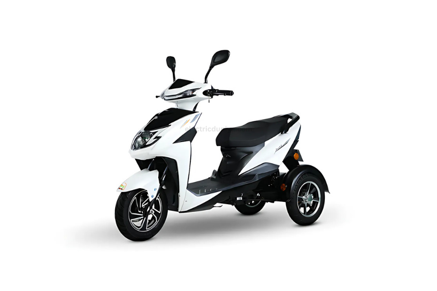 The AMO Jaunty-3W is a three-wheeled electric scooter designed for stable, low-speed urban trips, with a 249 W motor, 1.56 kWh battery and a claimed 75-100 km range.